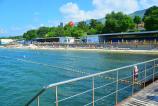 Расстояние от санатория до морского берега всего 50 метров. Пляж у санатория мелкогалечный, протяженностью 250 метров.